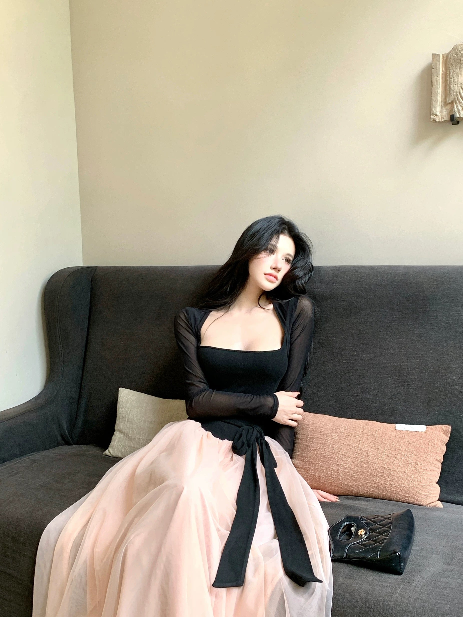 公主邀约 法式长袖假两件修饰连衣裙 French long-sleeve faux-two-piece dress with a princess vibe