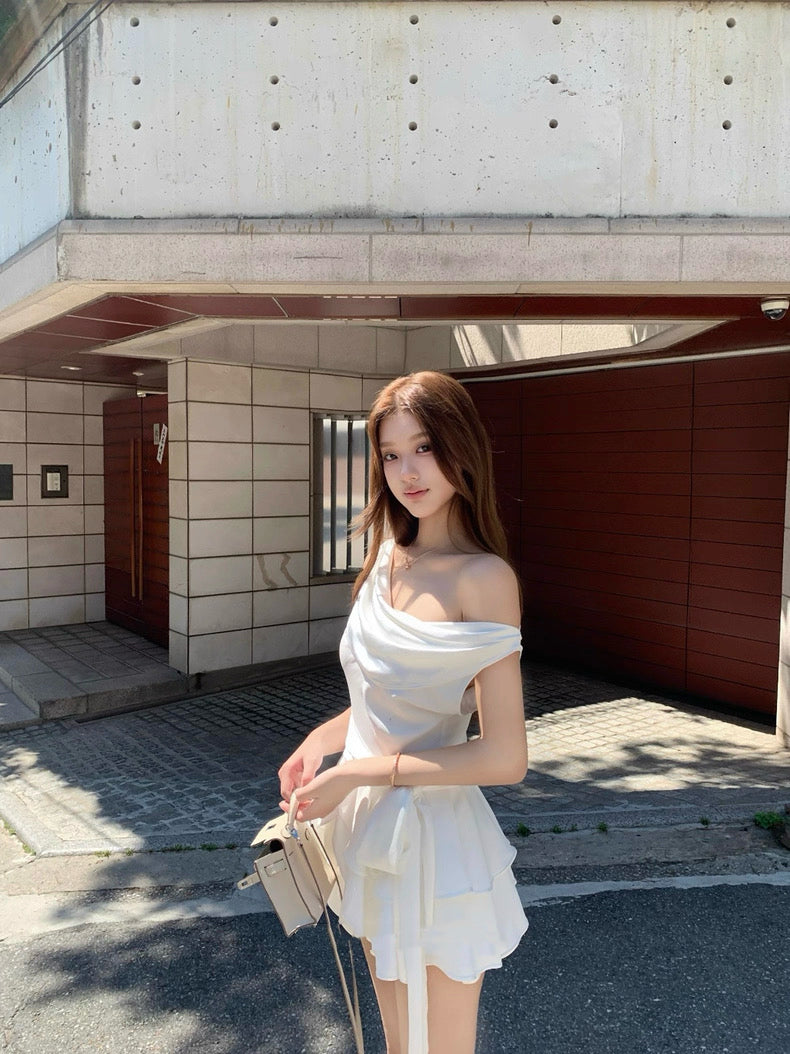 典藏情话 缎面荡领荷叶边连衣裙 Timeless Romance Satin Draped Neck Ruffle Dress