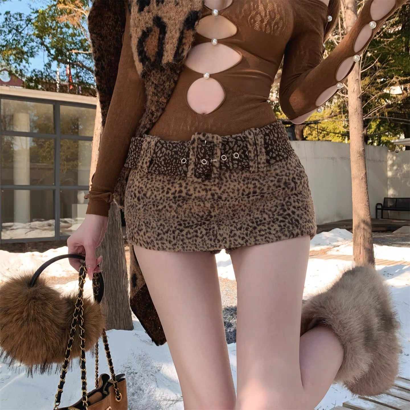 四季野性 美式咖色豹纹半身裙 Four Seasons Edit · American Coffee Leopard Print Midi Skirt