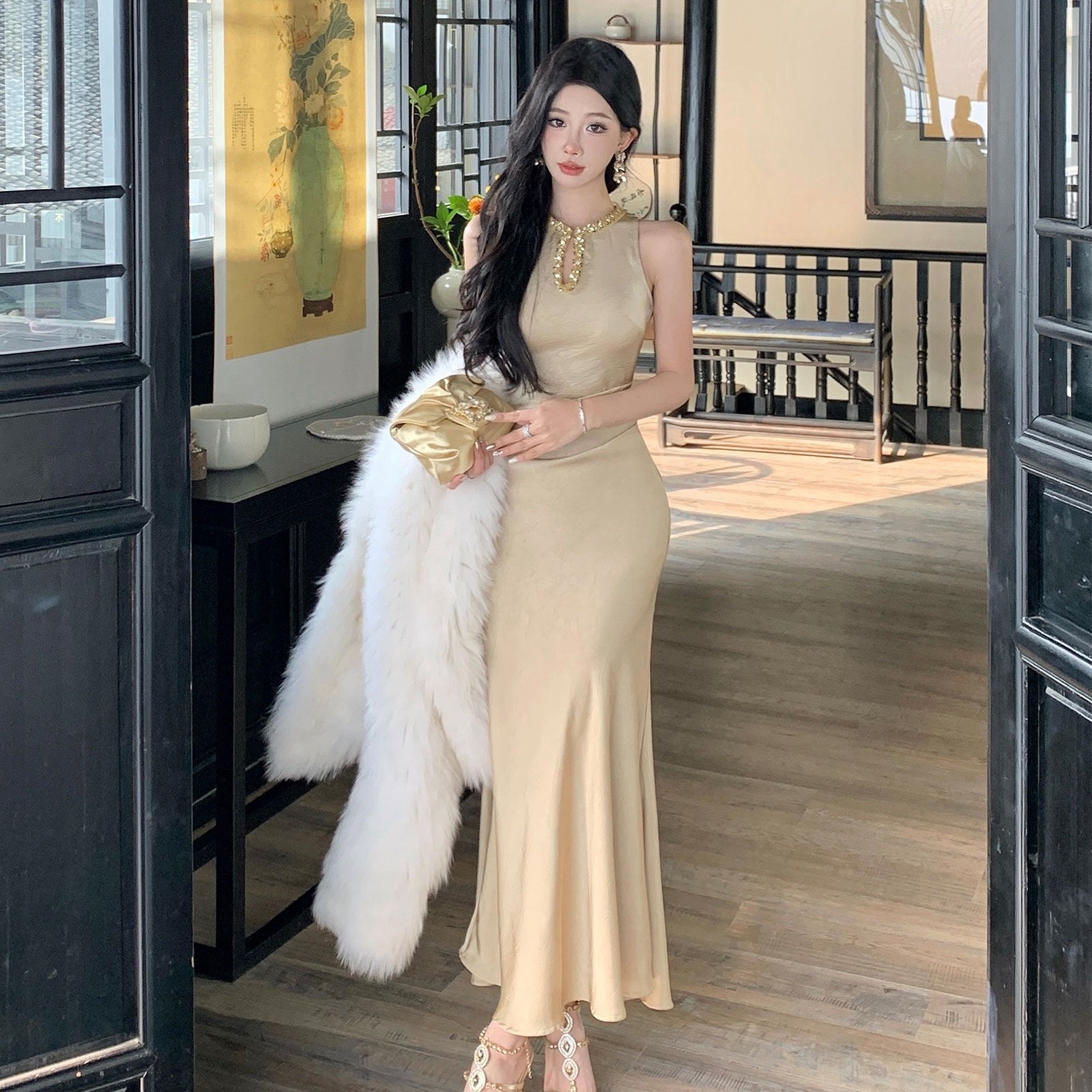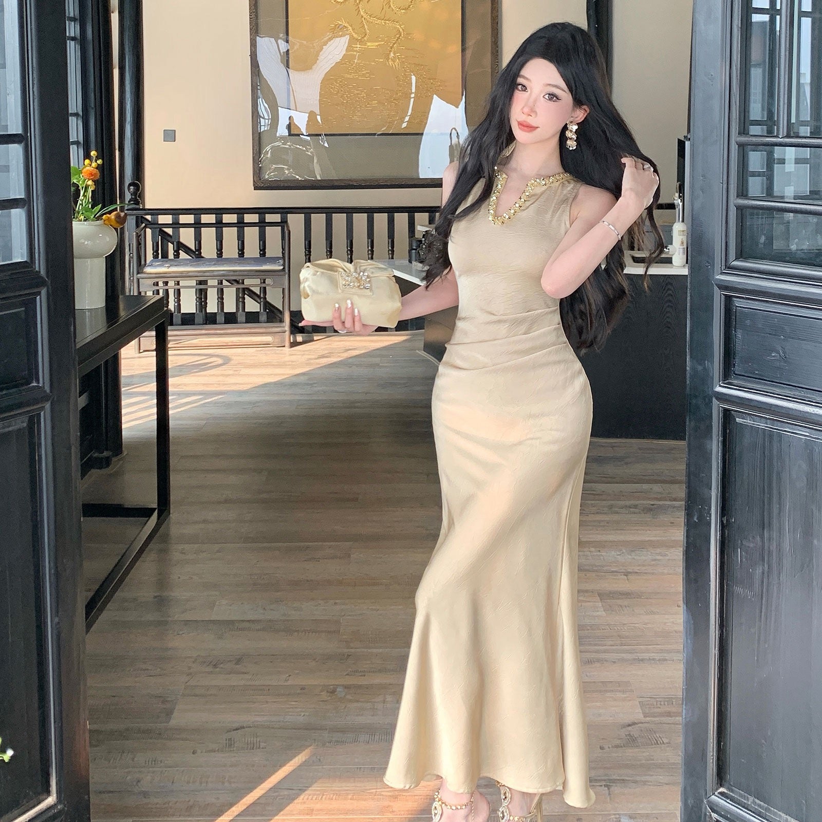 富豪女人 奢华贵气感亮片钉珠礼服长裙 Wealthy Woman Luxurious Sequin & Beaded Evening Gown