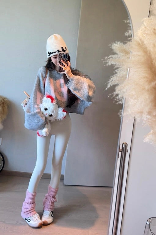 慵懒暖宝 字母宽松韩系上衣 Cozy Lazy-Style Lettered Oversized Korean Top