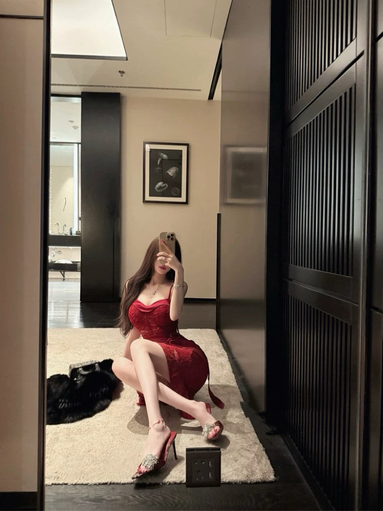 玫瑰余烬 Rose Embers Elegant Chenille Lace Long Dress
