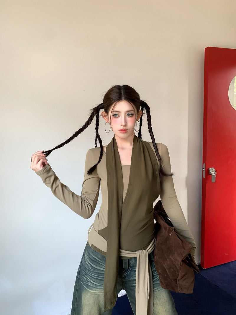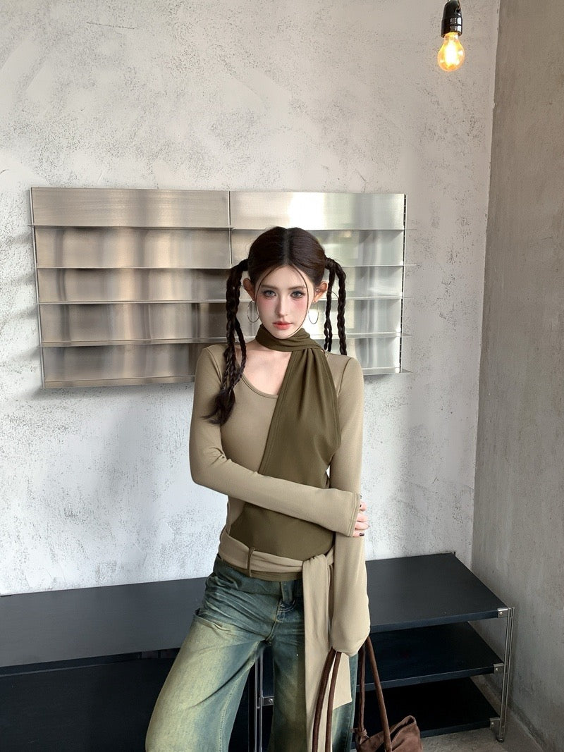 缠绕浪漫 假两件不规则打底衫上衣 Double Vision Faux Two-Piece Strappy Top