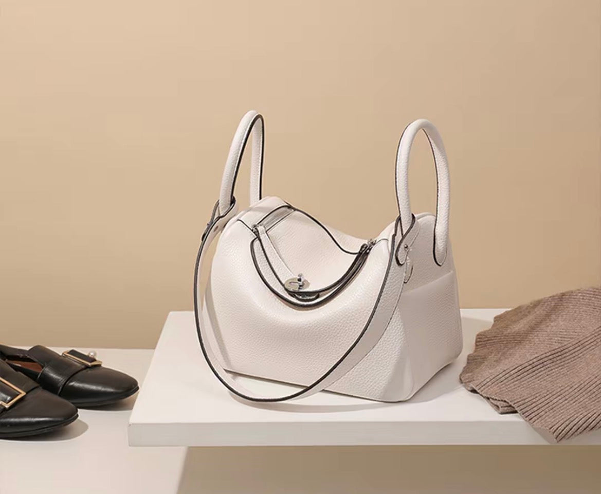 LINDI VERA Women’s Genuine Leather Doctor Bag Large-Capacity Pillow Shoulder Handbag