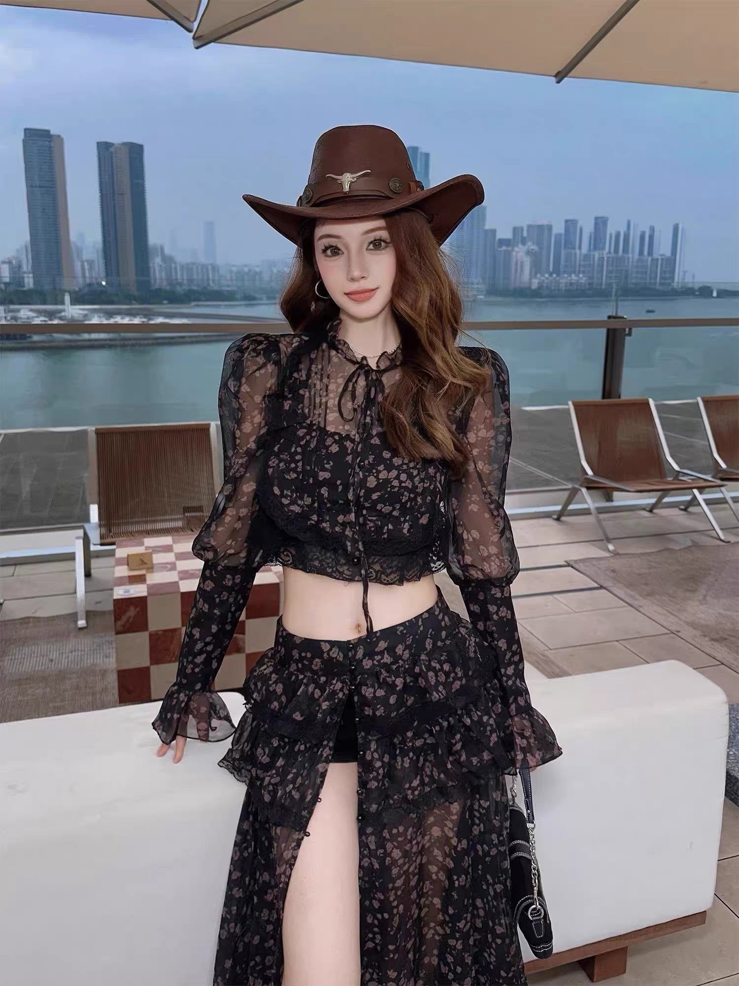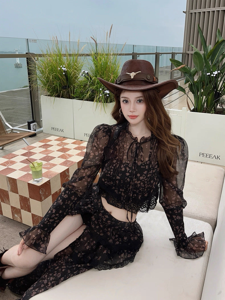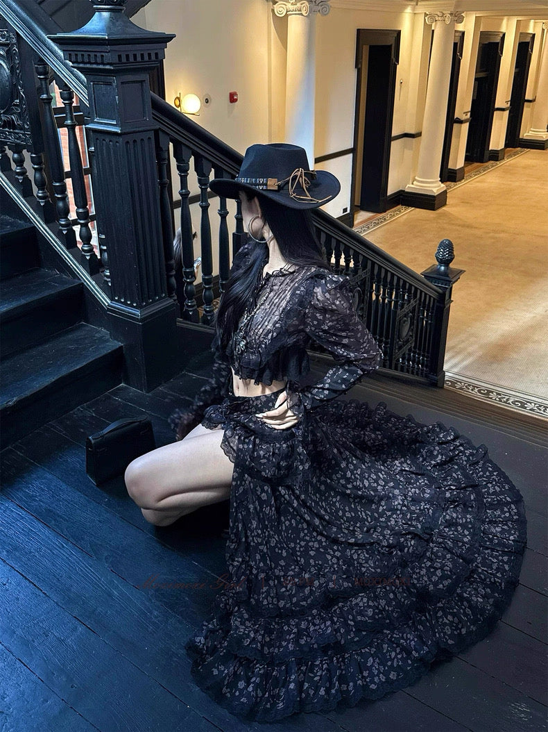 墨点流光 黑色波点上衣荷叶边半裙短裤套装 Ink-Flow French Style Polka Dot Two-Piece Set
